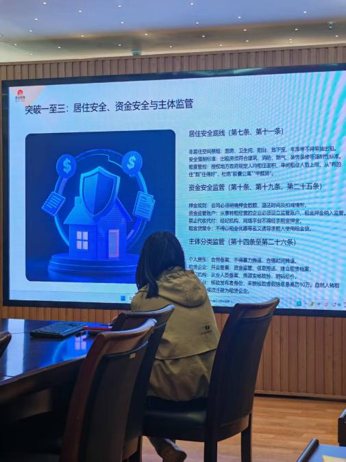 该条例作为我国住房租赁领域的首部专门行政法规,覆盖出租承租、租赁企业、经纪机构、监督管理等全领域,明确了出租住房的安全标准以及合同备案要求,规范了租赁企业的资金监管和经纪机构的服务边界,划定了行业红线,强化了多部门的协同监管,有效解决当前租赁市场秩序不规范、权益保障不足等突出问题。 作为经市政府批准成立的国有企业担保机构,公司将立足存量房交易资金监管、住房贷款担保等核心职能,以此次培训为契机,强化全员合规服务理念,细致梳理业务关联风险点、完善服务流程,同时依托公司公众号、服务窗口等渠道向群众普及政策知识,为住房租赁相关业务有序开展做好充分准备。